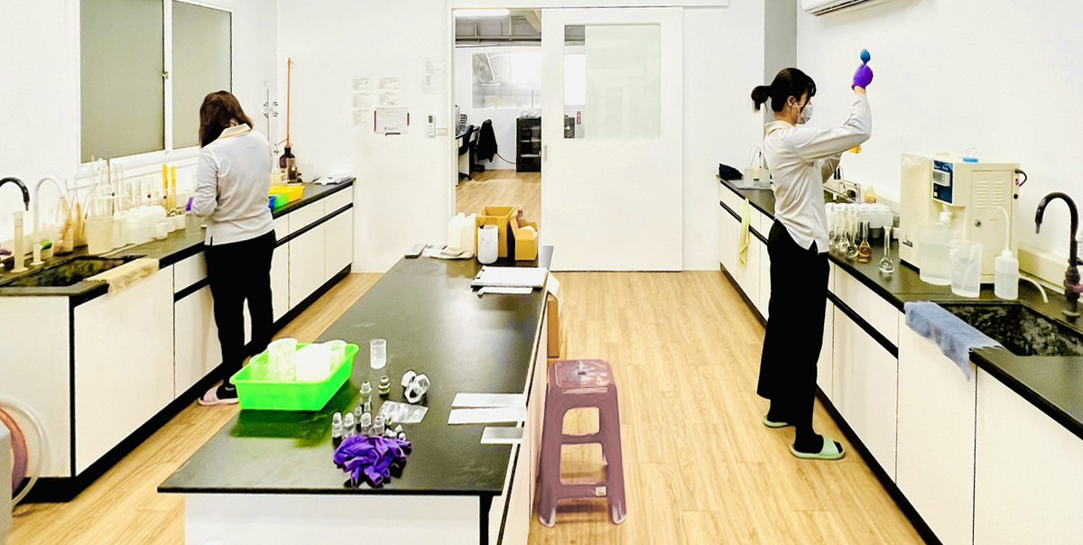 運用化學平衡原理分析酸及鹼的濃度,用以確保電鍍製程參數符合所訂目標,借由氧化還原滴定偵測製程化學品中雜質含量以確保電鍍品質。
